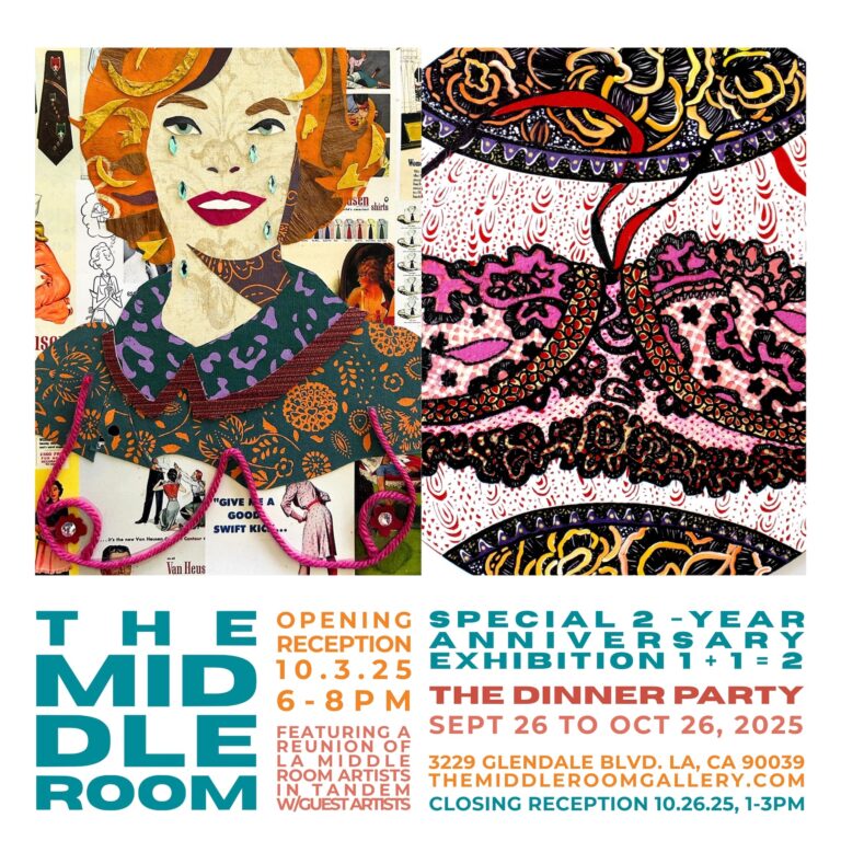 Group show at THE MIDDLE ROOM featuring a reunion of LA Middle Room artists in tandem w/ guest artists September …