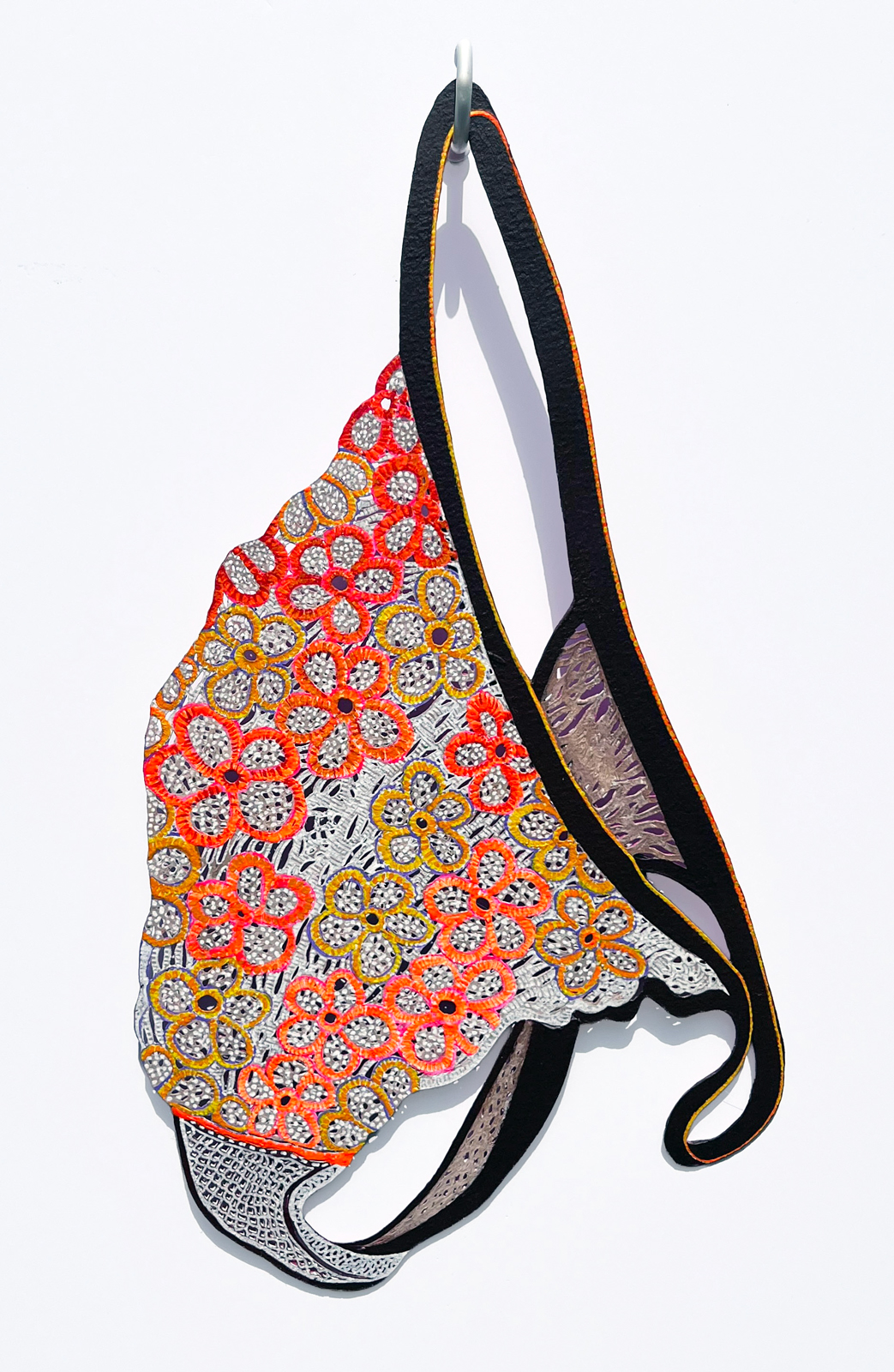 Hand-cut paper with acrylic & eyelets